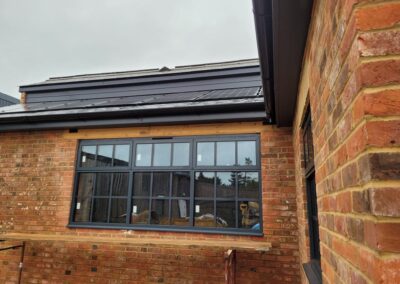 At Farmer Palmers, we renovated a house with crittal style windows and doors with a professional anthracite grey frame giving it an elegant finish.